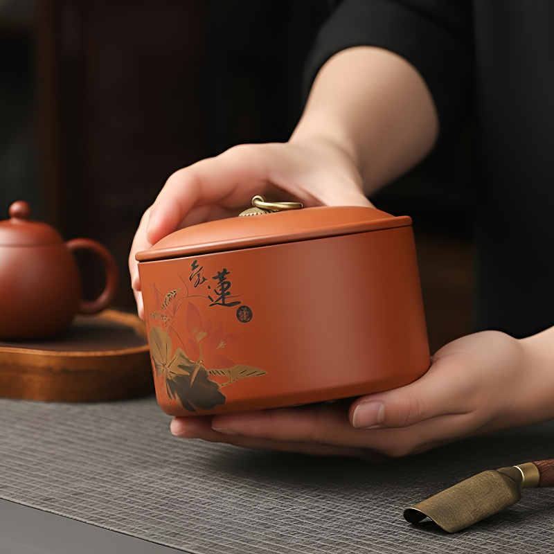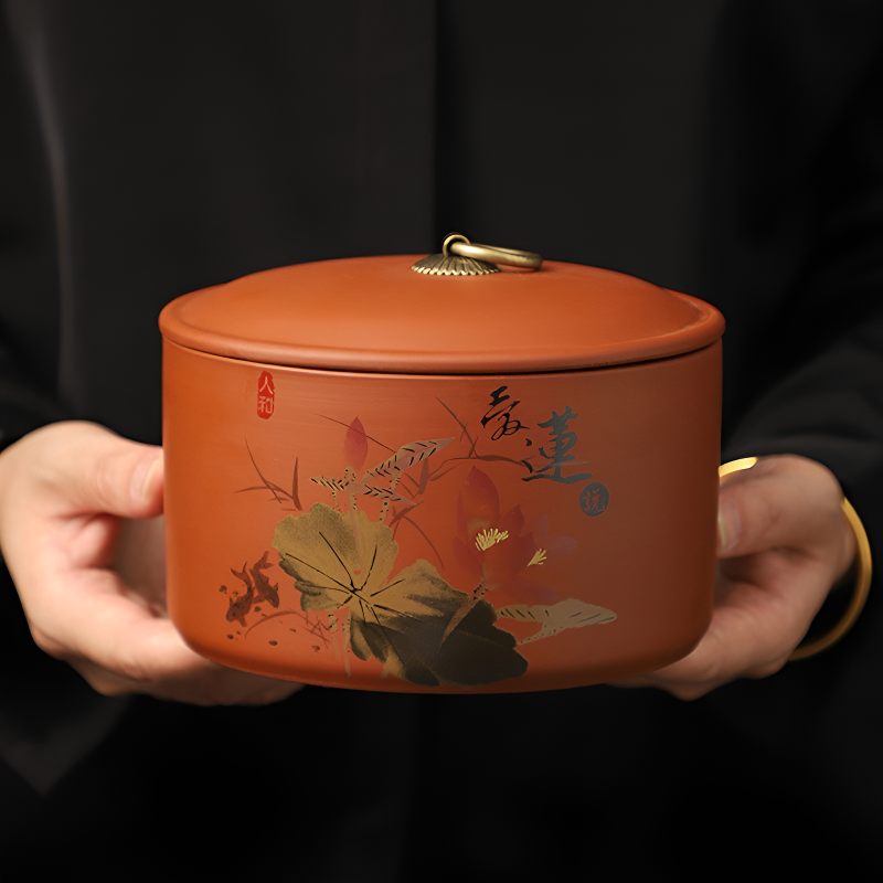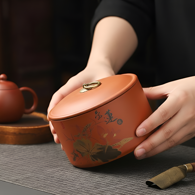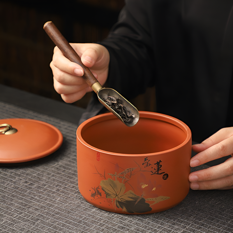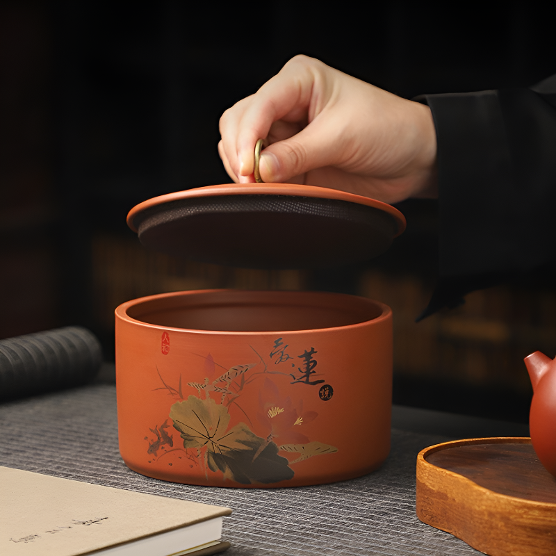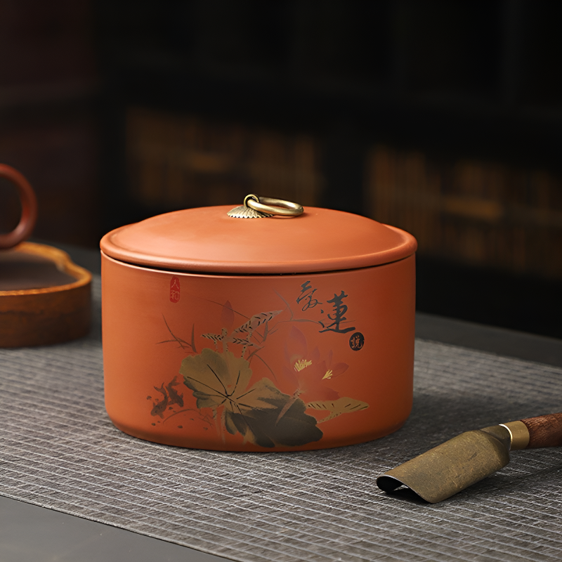• Écrin précieux pour vos thés: Argile violette orange aux motifs floraux gravés, objet déco qui sublime votre cuisine
