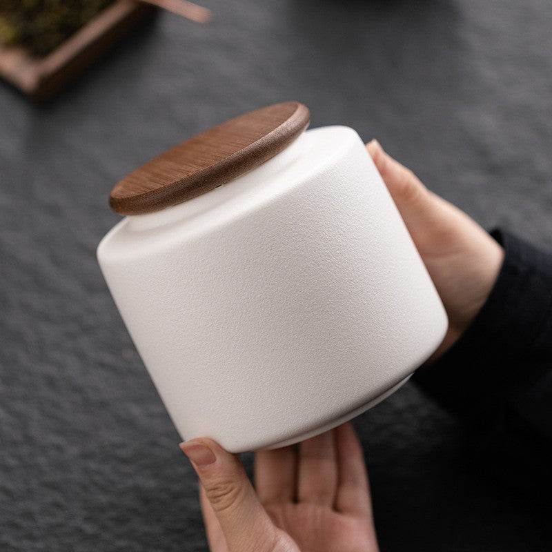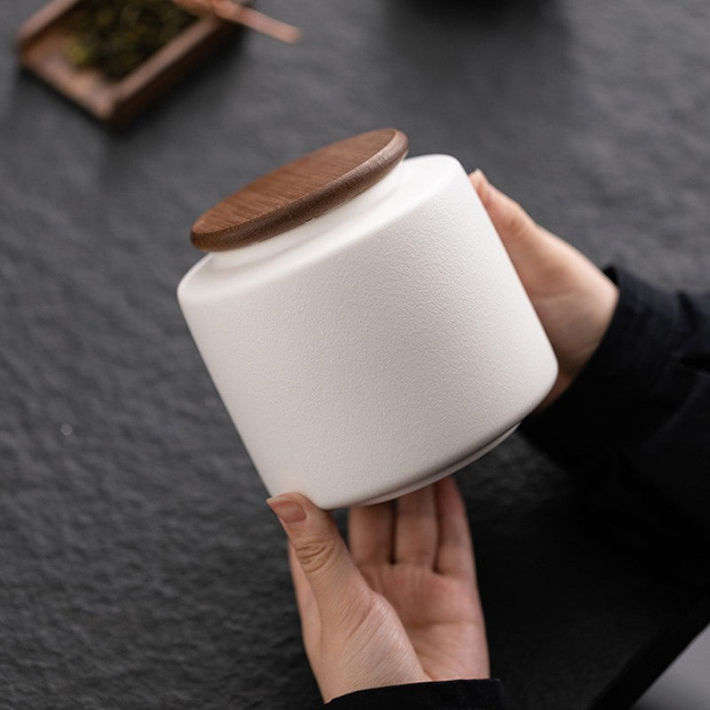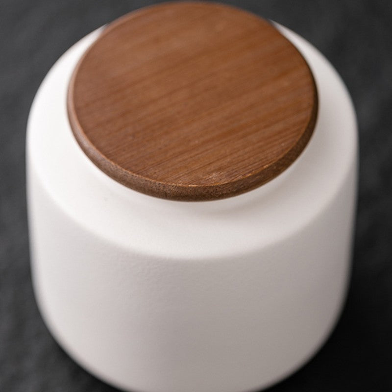 • Épure scandinave intemporelle: Céramique blanche mat et couvercle bois naturel, harmonie visuelle qui apaise votre cuisine ou étagère