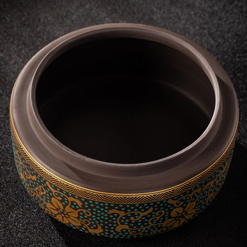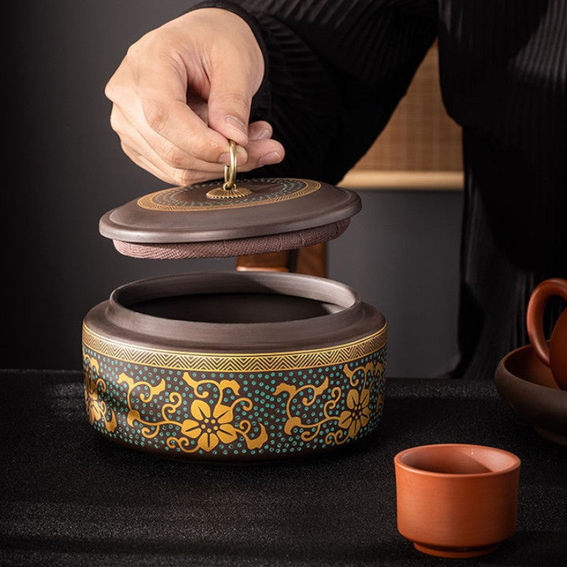• Poignée laiton sculptée: Bouton doré ouvragé couronne le couvercle, détail précieux qui fait toute la différence