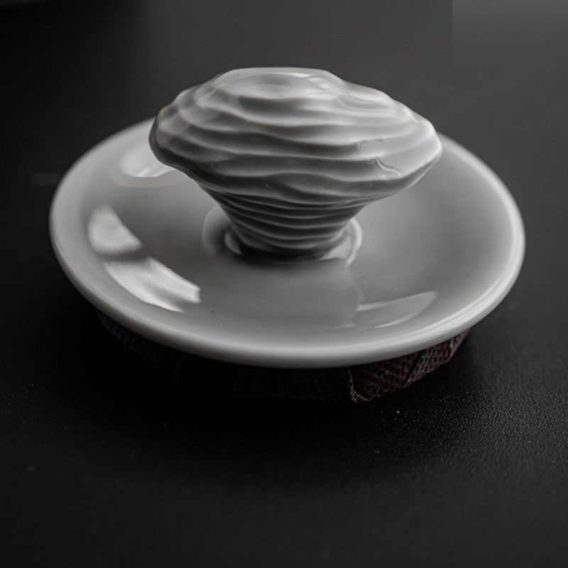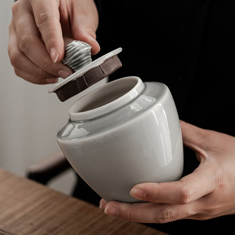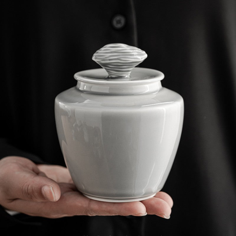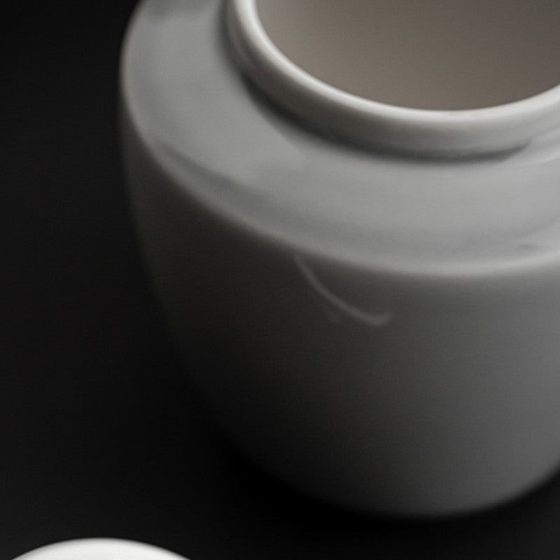 • Sculpture zen intemporelle: Forme urne arrondie blanc cassé, lignes douces et couvercle sculpté main qui transforment le stockage en objet d'art