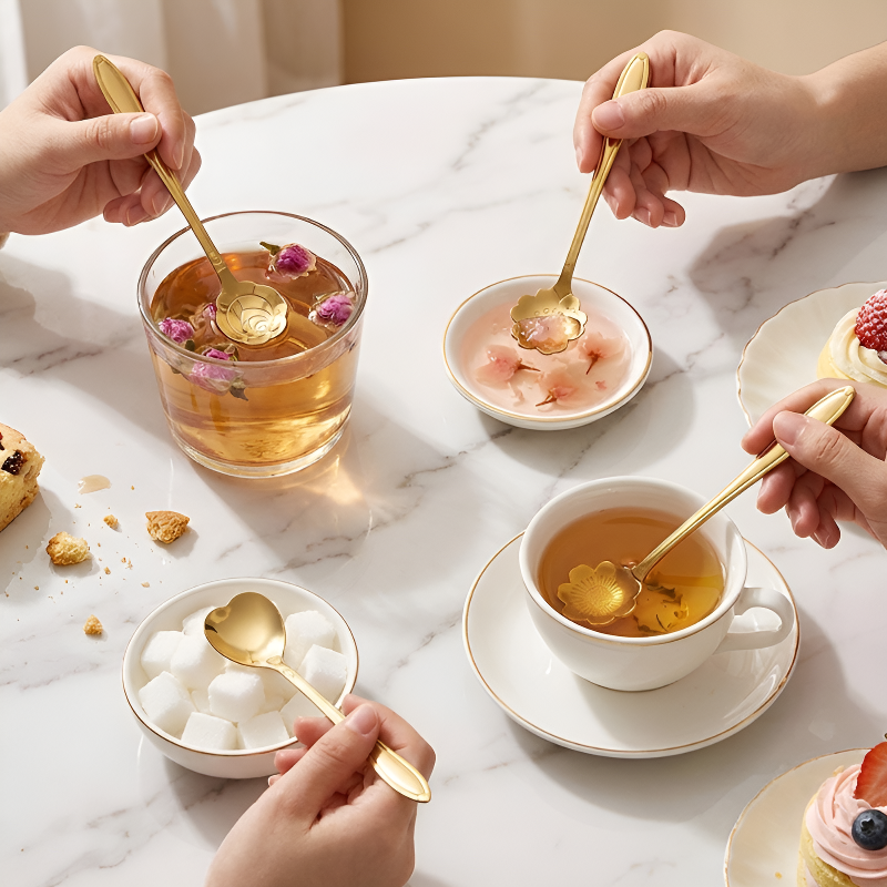 • Éclat doré miroir: Acier inoxydable poli reflète la lumière, touche précieuse qui sublime votre service à thé