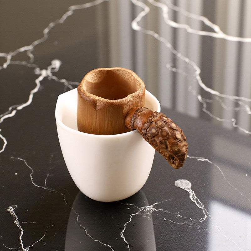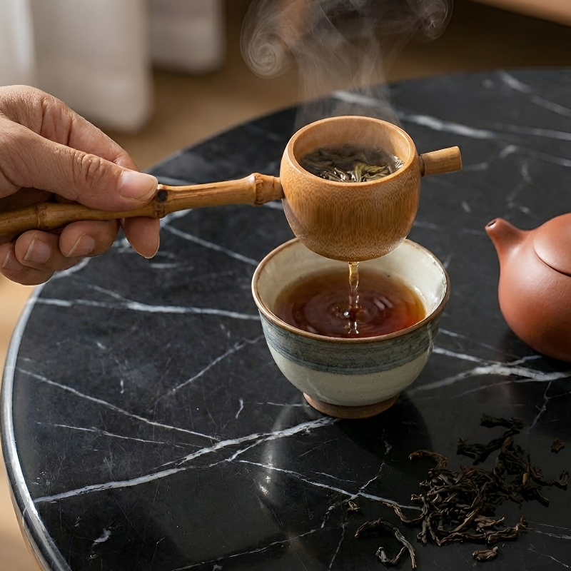 • Geste zen naturel: Bambou brut au toucher chaleureux transforme votre filtrage en rituel authentique connecté à la terre