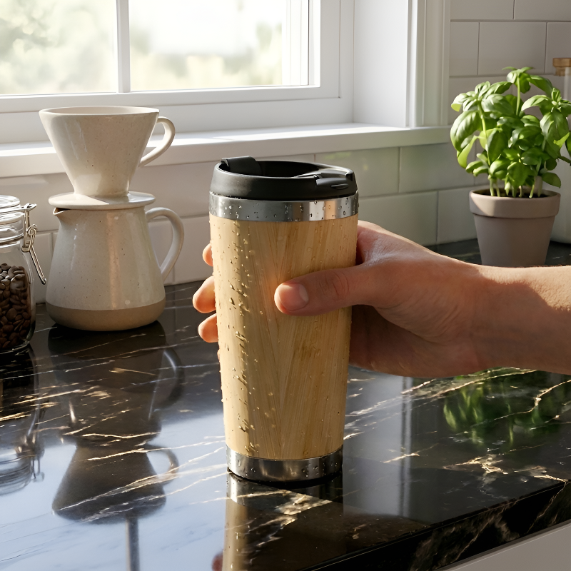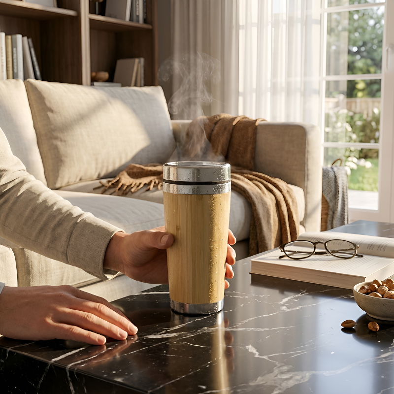 • Chaleur naturelle: Finition bambou élégante qui réchauffe le regard et se démarque des mugs classiques