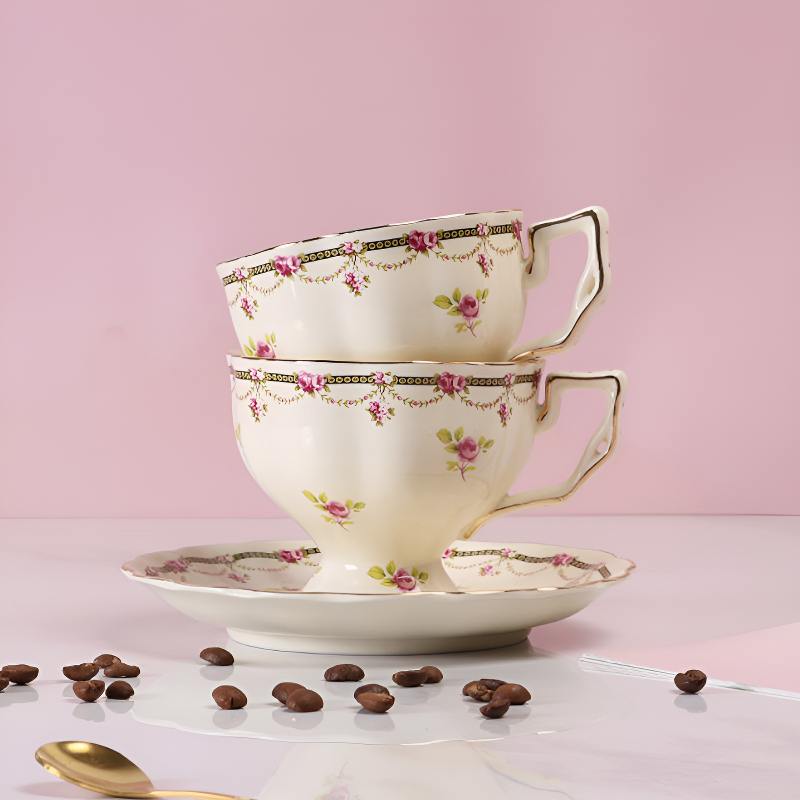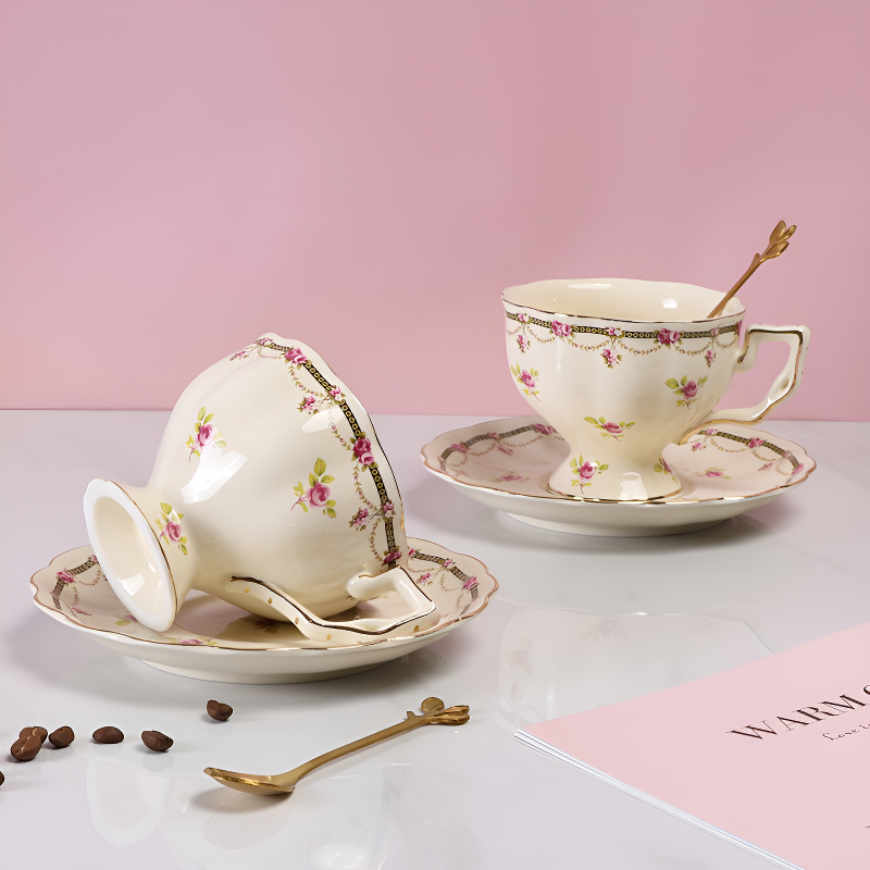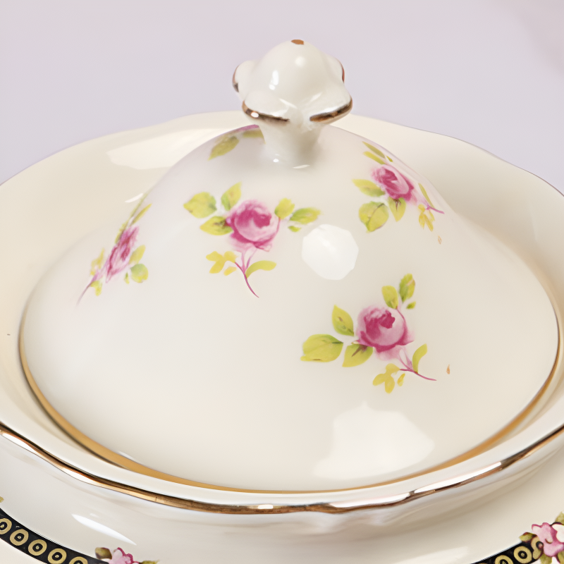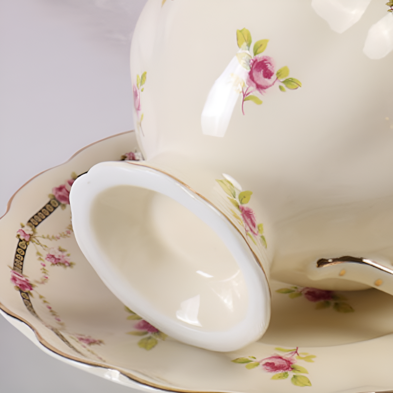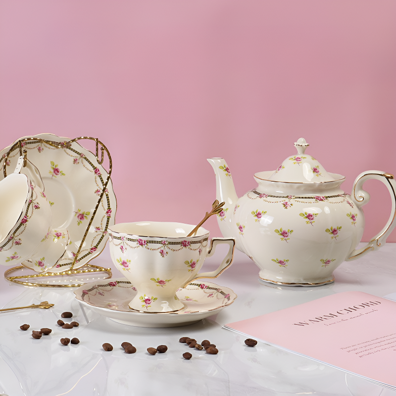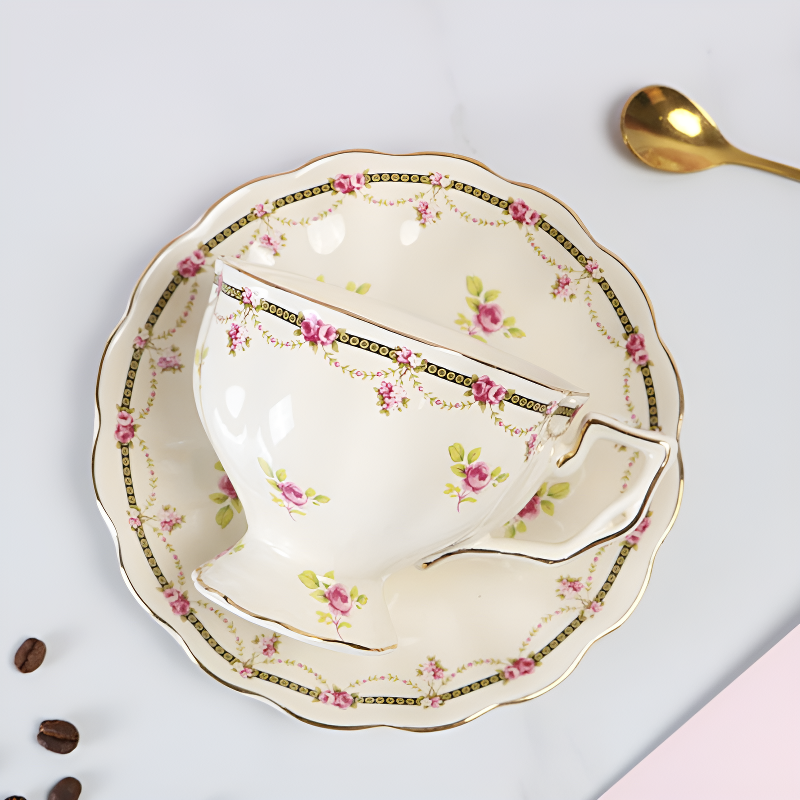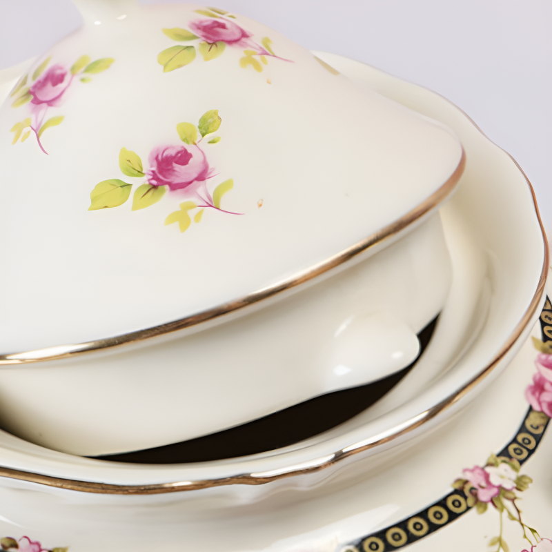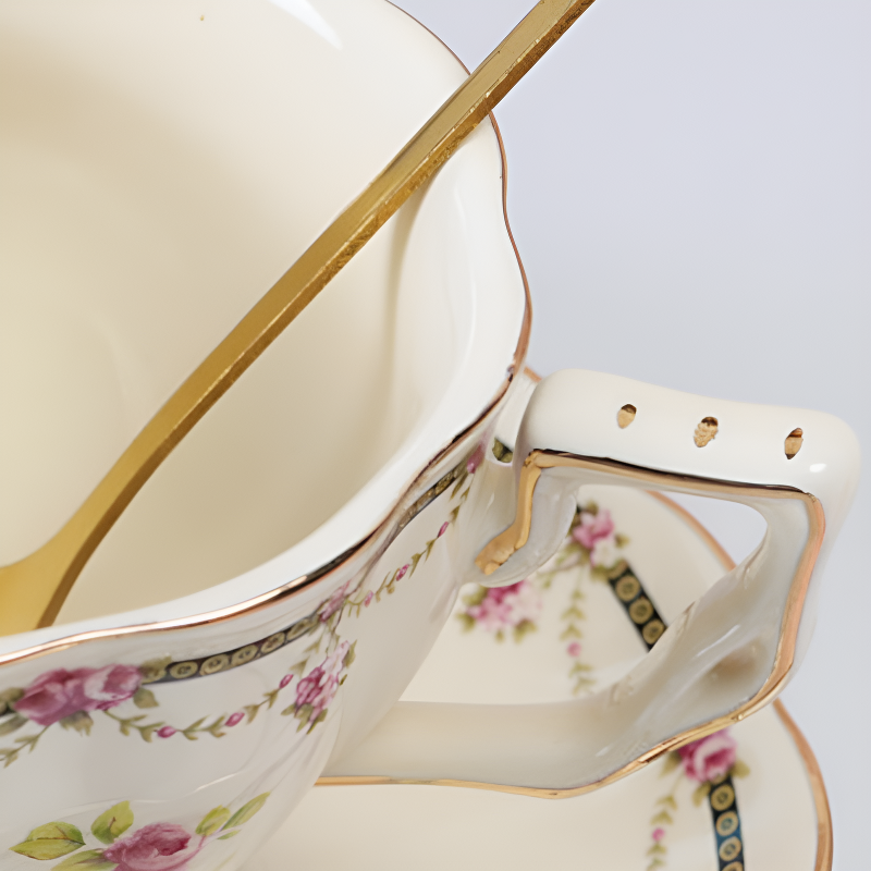 • Porcelaine noble dorée: Floraux délicats et dorures précieuses qui traversent le temps, pièce maîtresse transmission