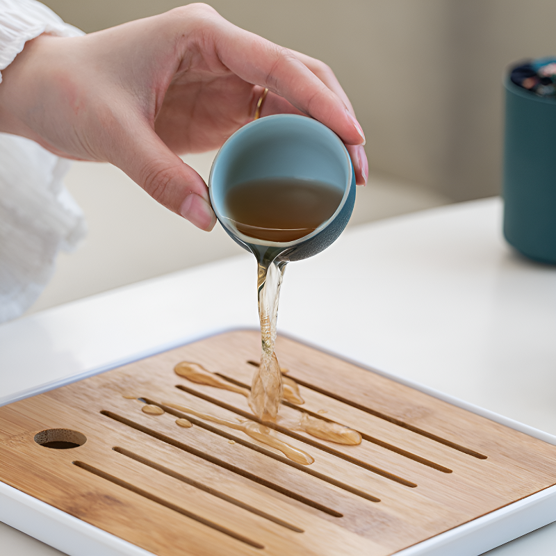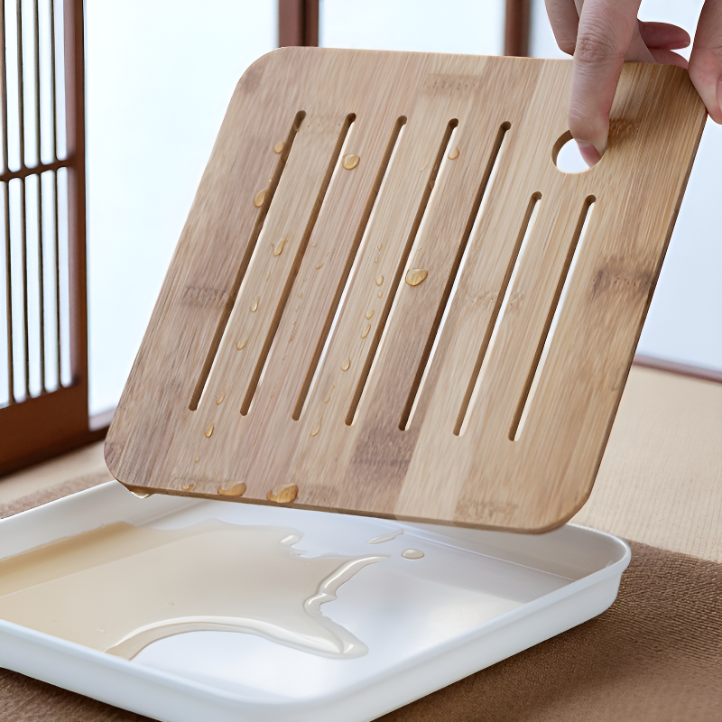 • Plateau bois intégré: Support bambou clair apporte chaleur naturelle, matière vivante qui dialogue avec la céramique pour esthétique organique complète