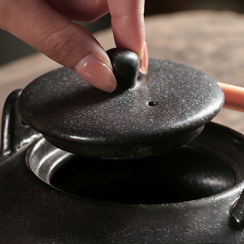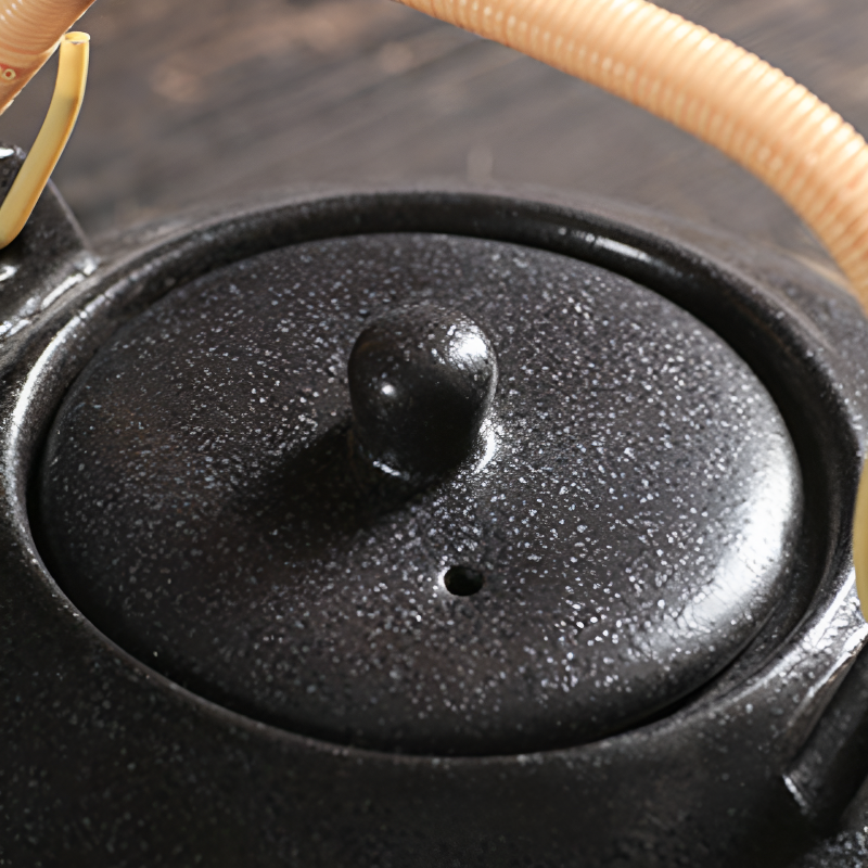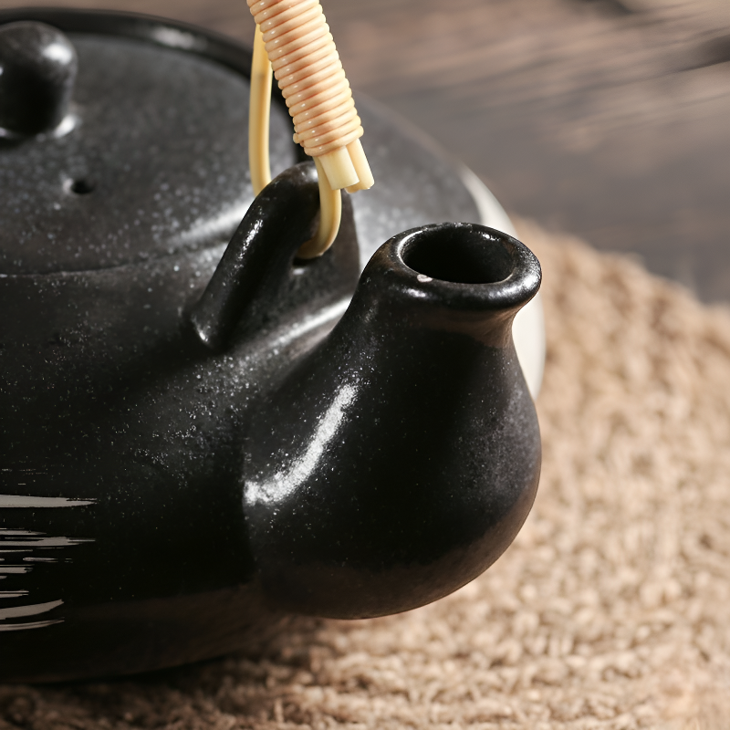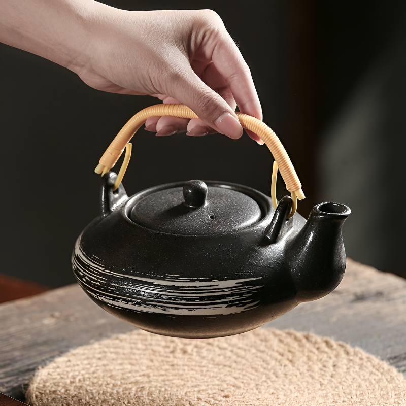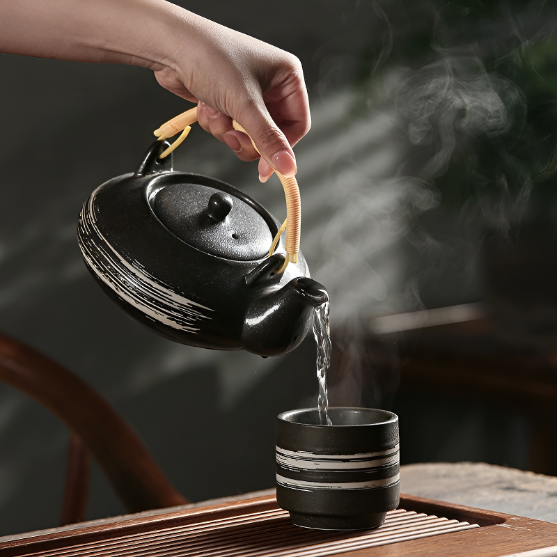 • Cérémonie zen complète: Set harmonieux noir profond mat, anse rotin naturelle qui réchauffe l'esthétique minimaliste japonaise