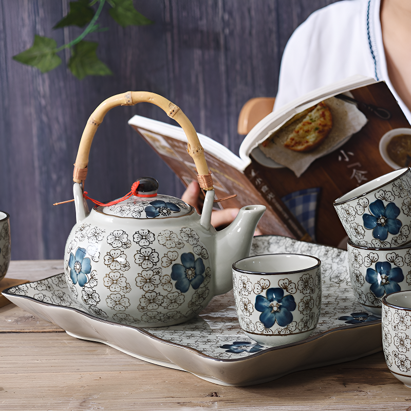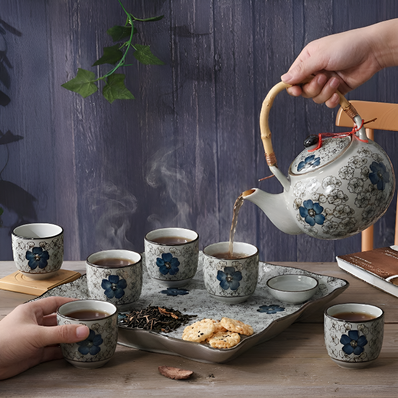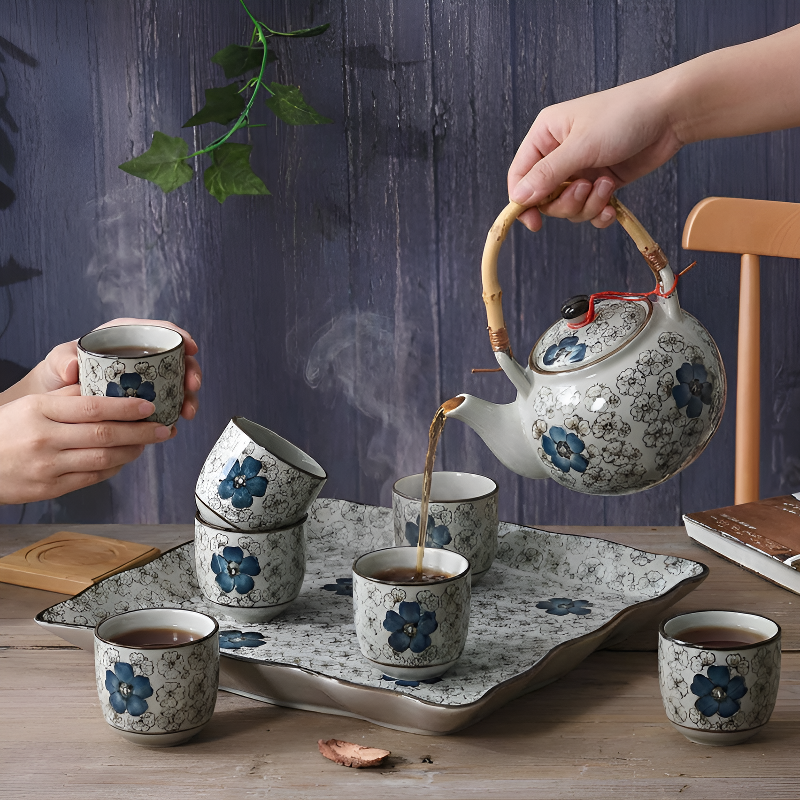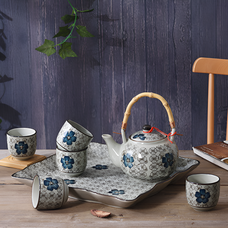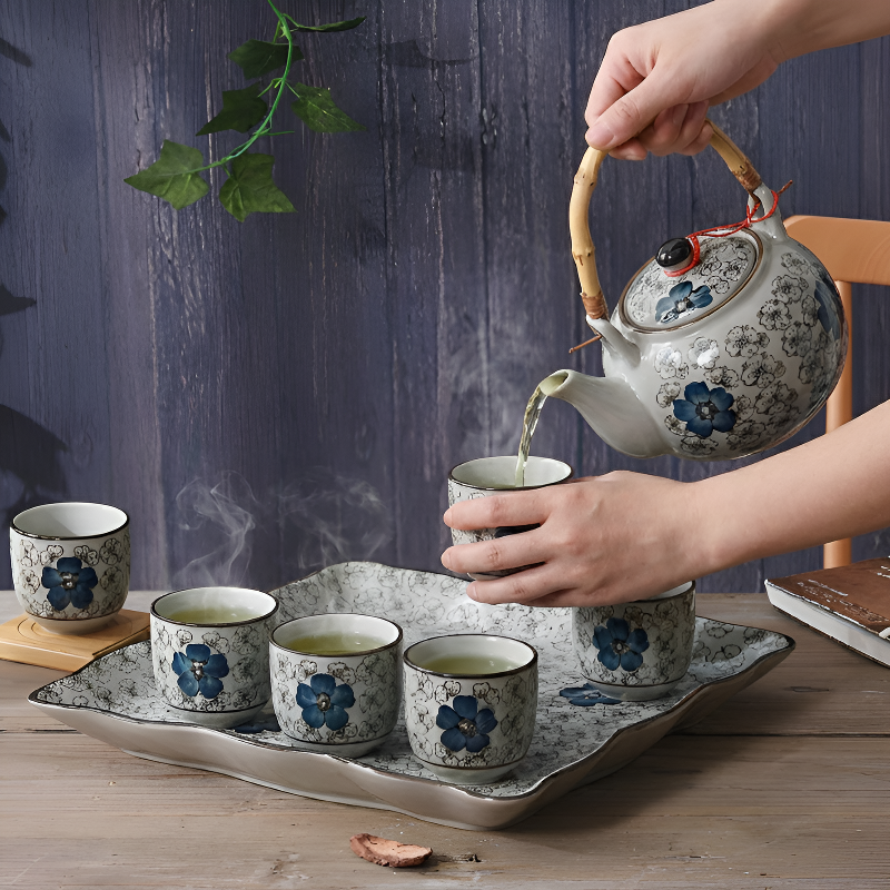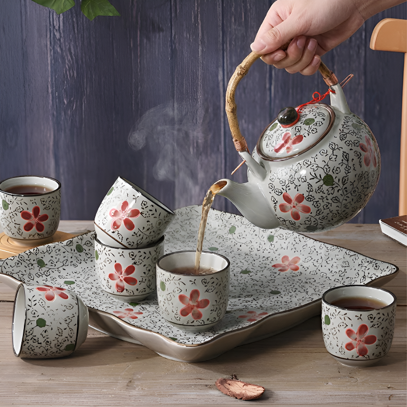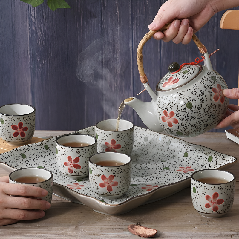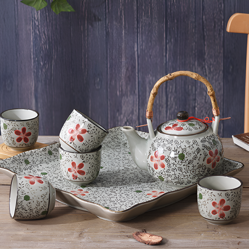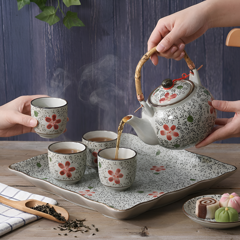 • Cérémonie complète: Théière généreuse, 5 tasses 150ml et plateau assorti, prêt à recevoir
