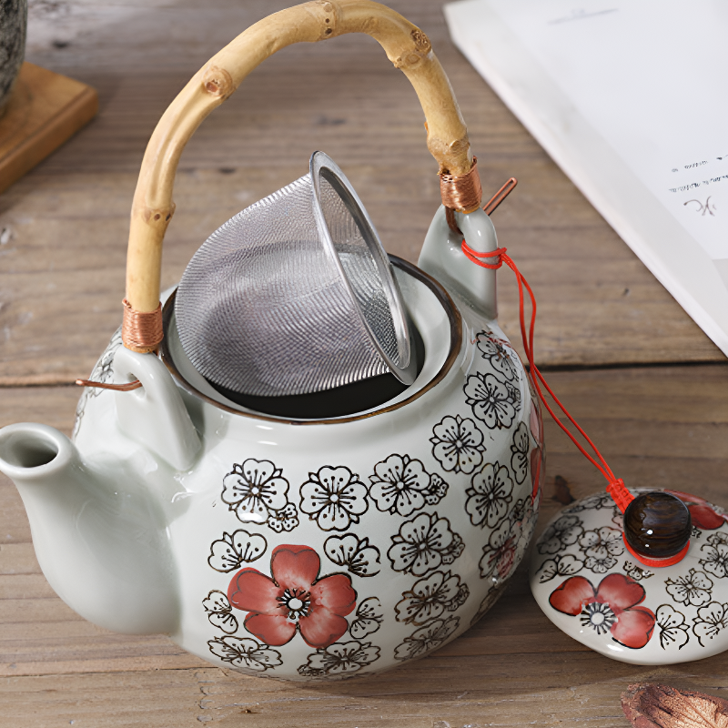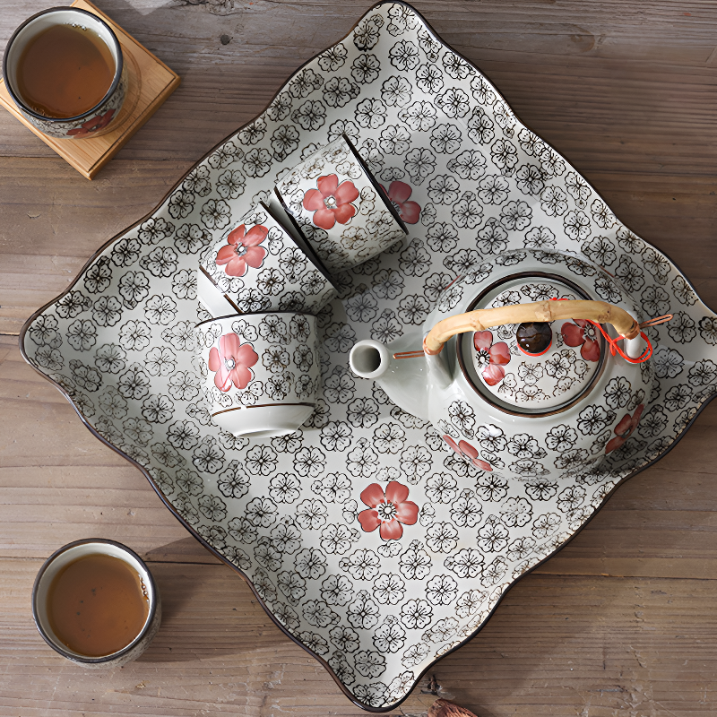 • Jardin nippon: Motifs floraux peints sous glaçure en bleu délicat ou rouge vibrant selon votre intérieur