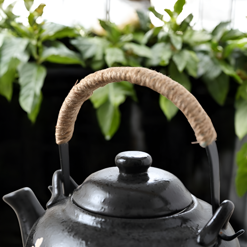 • Noir profond fleuri: Cerisiers délicats en relief sur glaçure effet neige, plateau bambou inclus pour cérémonie zen complète