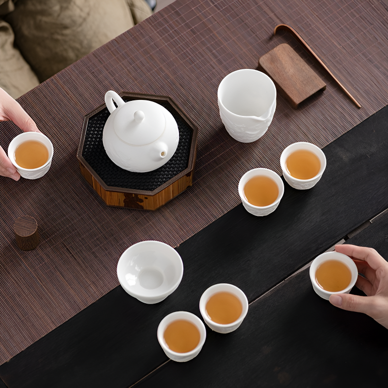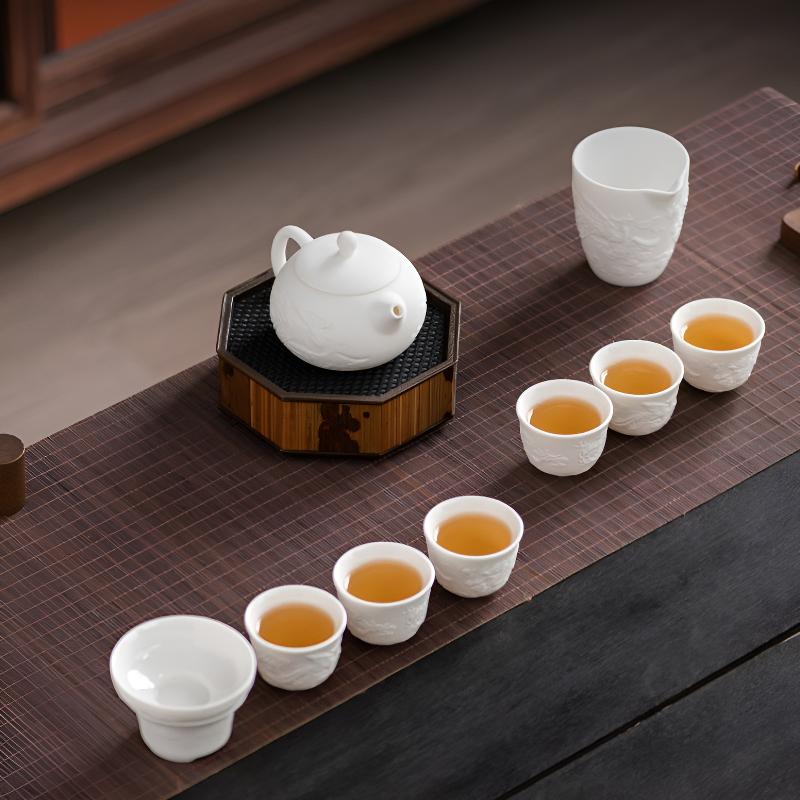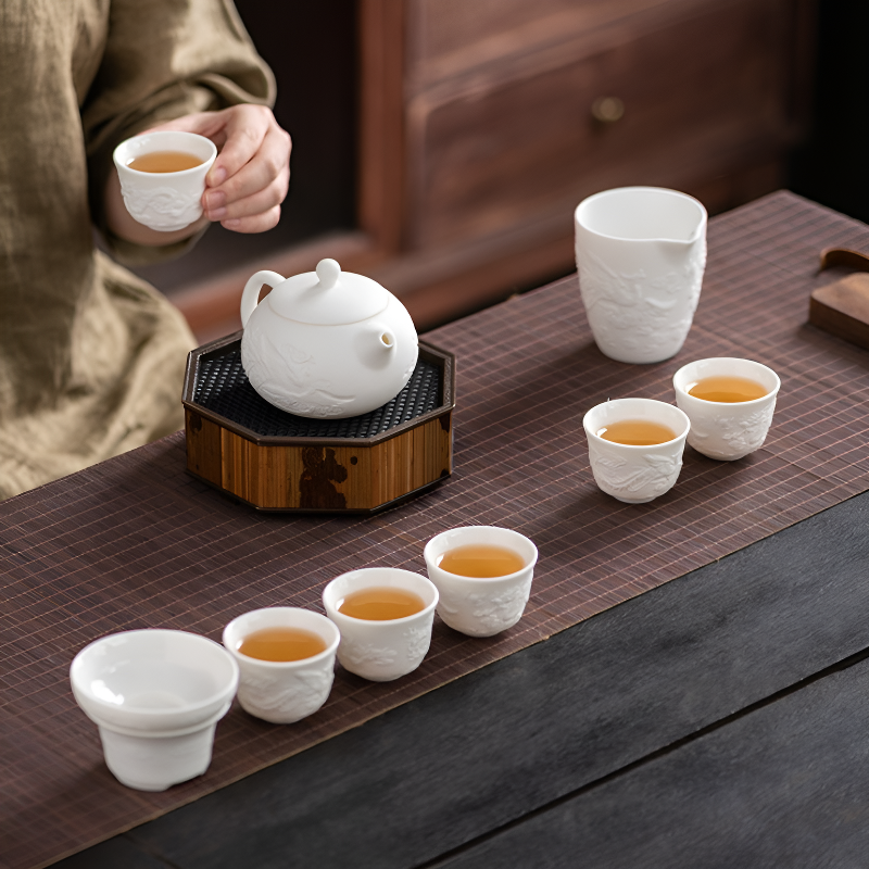 • Rituel complet pour six: Théière 250ml + 6 tasses 50ml + pichet + passoire, tous les accessoires de la cérémonie chinoise