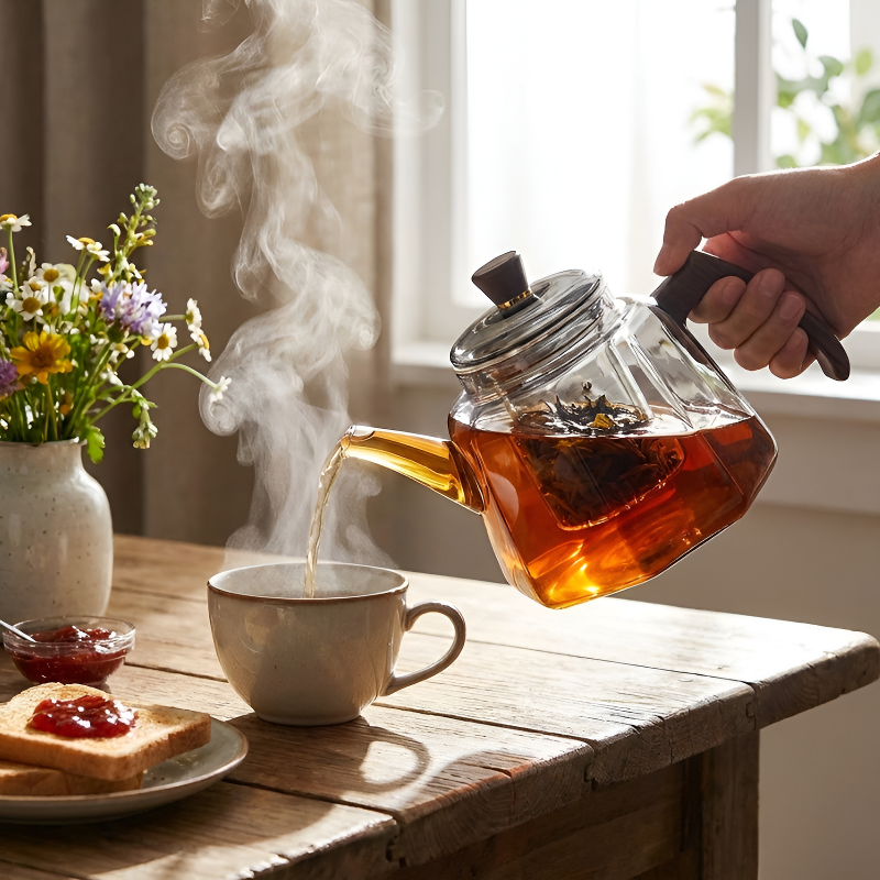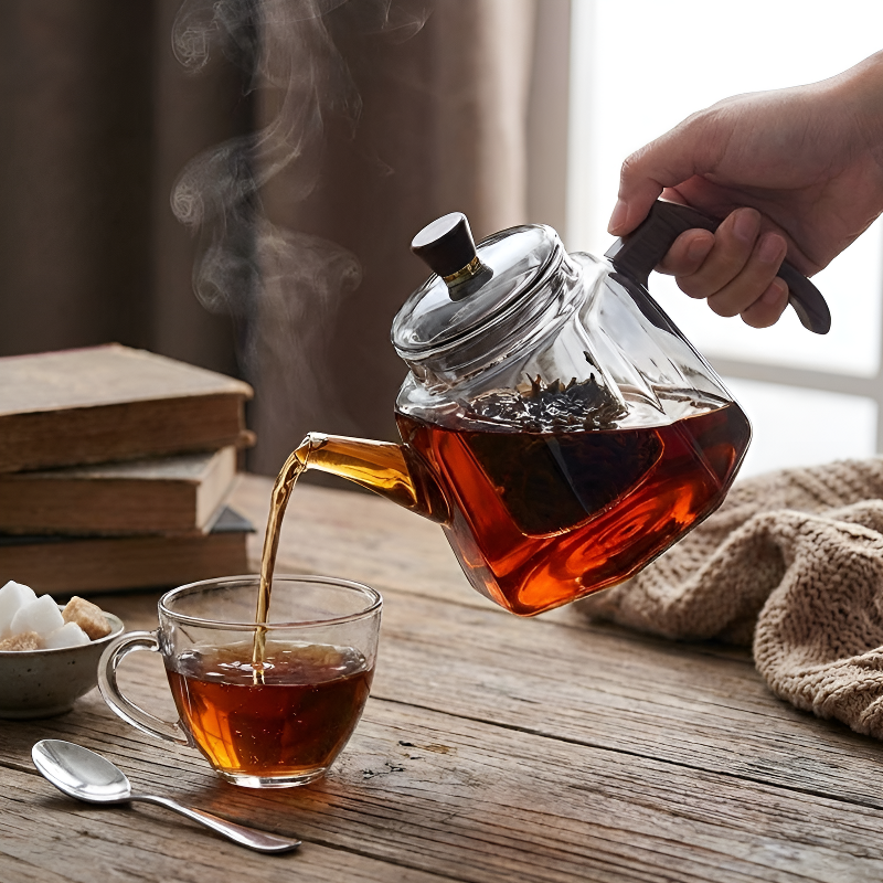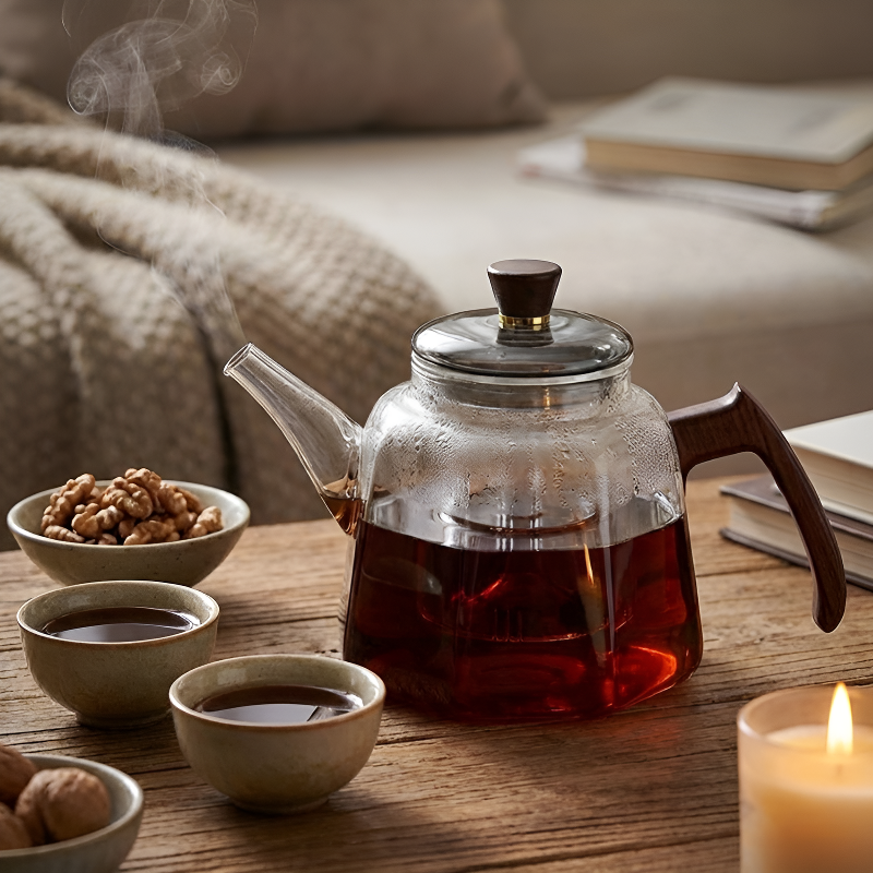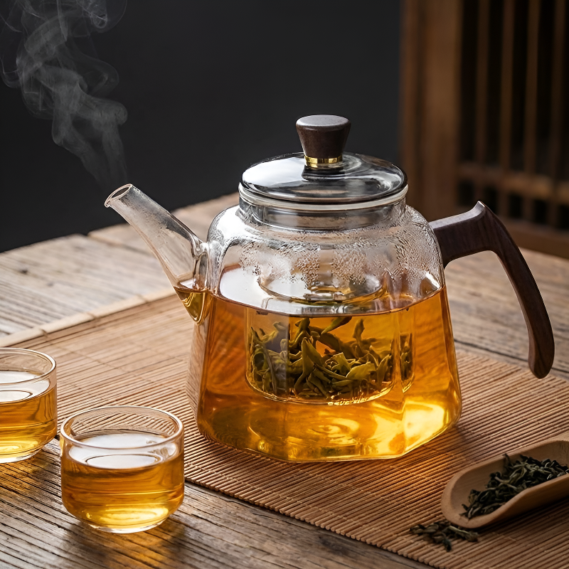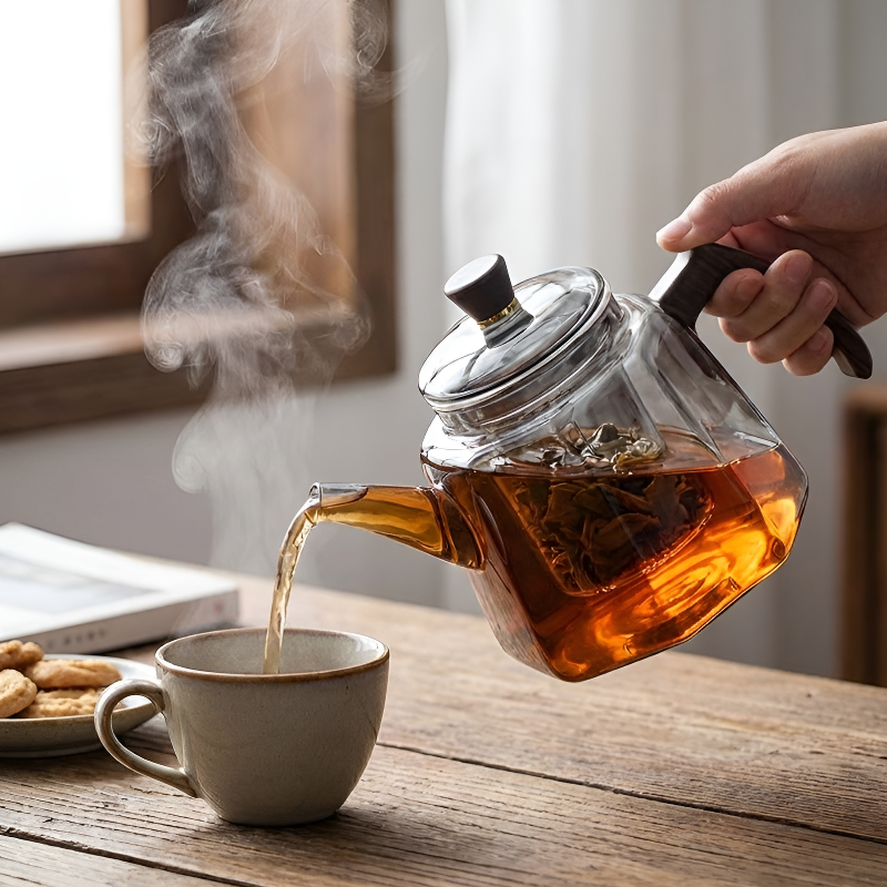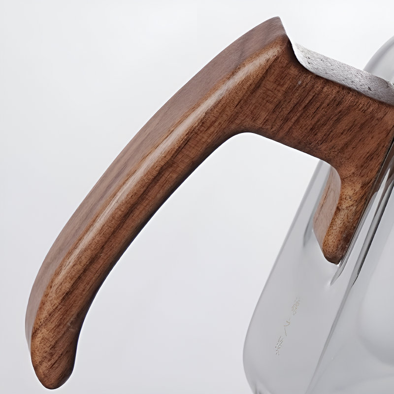 • Anse bois chaleureuse: Poignée naturelle reste froide au toucher, contraste élégant avec la transparence du verre