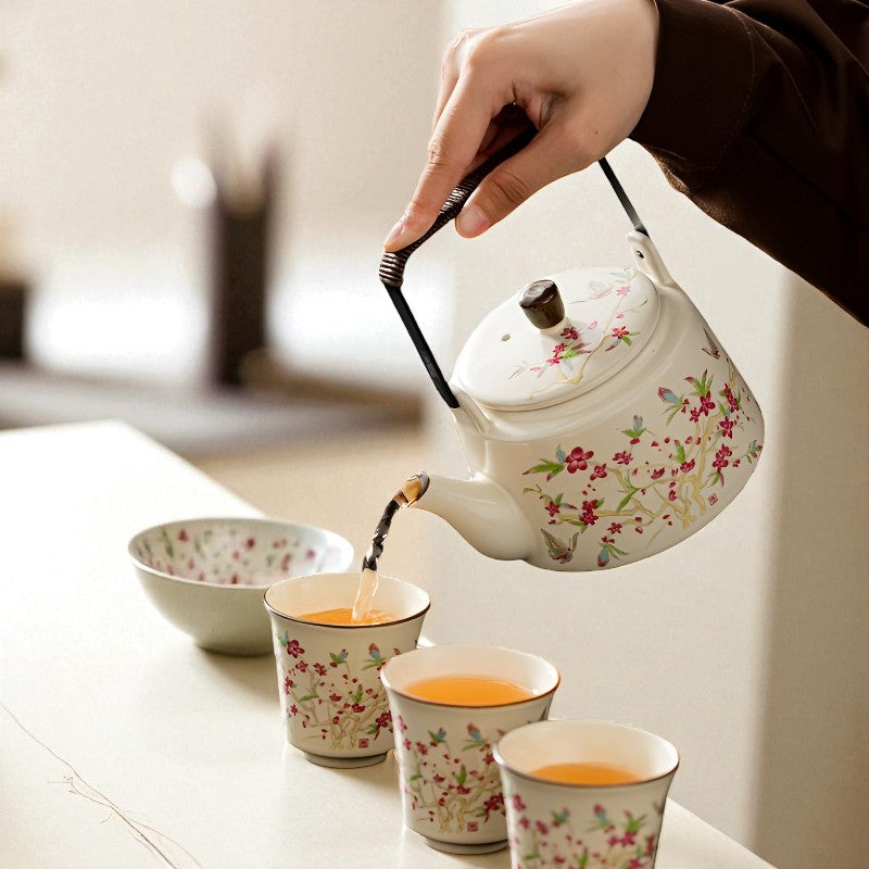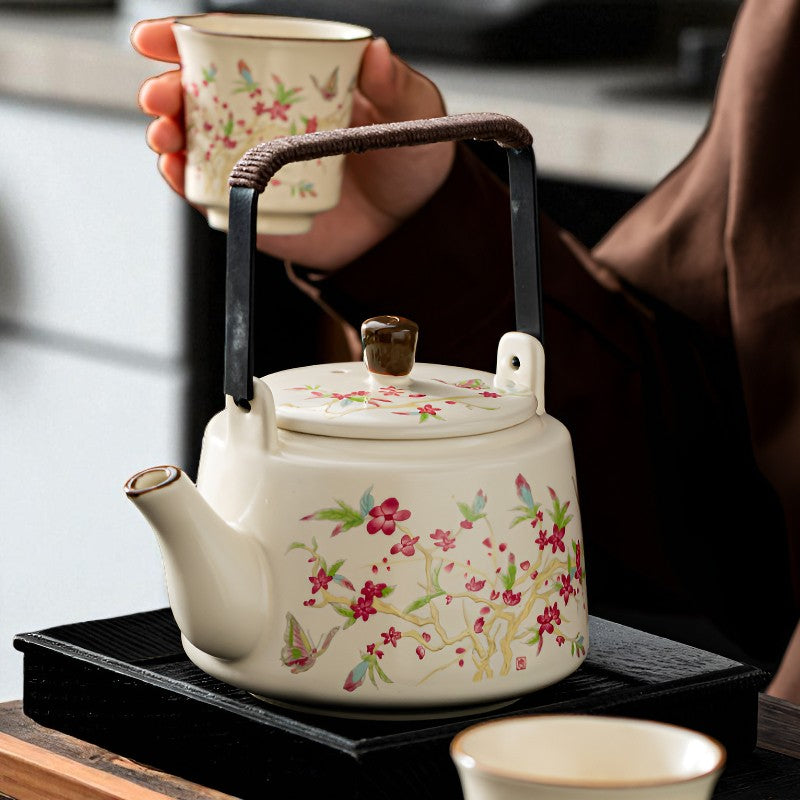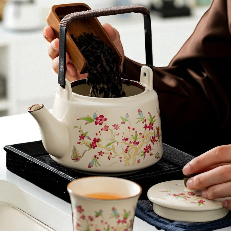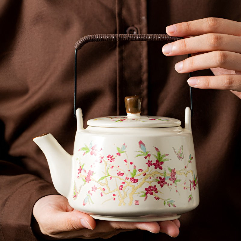 • Céramique qui raconte: Décor peint main qui traverse les années, chaque théière unique dans ses nuances